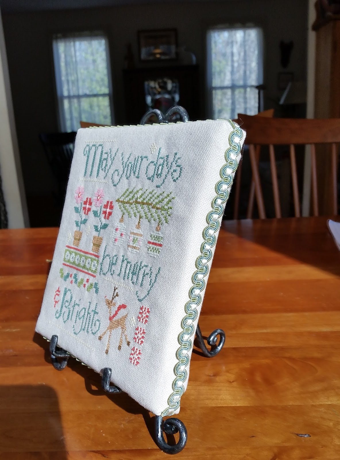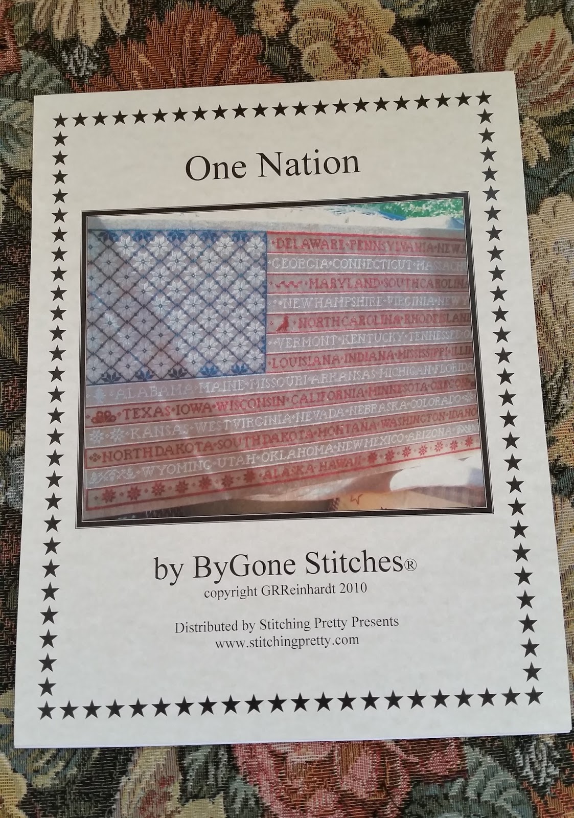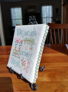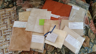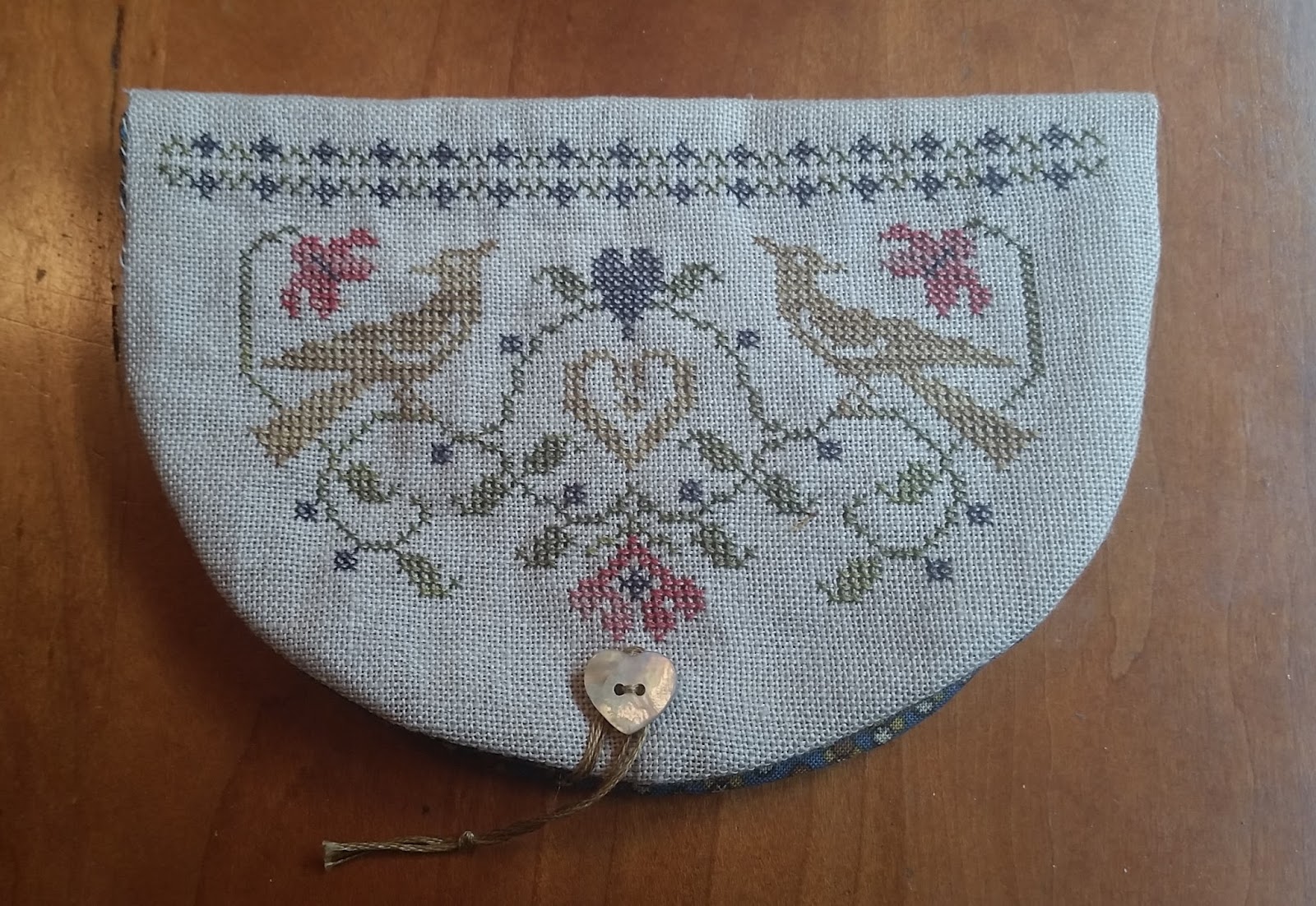 The hardest thing about not having an LNS is getting linen of the right color and texture for various projects. Ordering online doesn't always get you what you thought it would. I brought a list of linen to look for at Celebration, but even when I found the right fabric, the color didn't always look as I'd expected. For example, I wanted a piece of PTP Dill to stitch something from a Punch Needle & Primitive Stitcher magazine chart. I found one, but the color was nothing like the one in the magazine, and I didn't like it at all. But I certainly did find plenty of linen to have on hand for future projects (on the far left is a large cloth bag that came free with my purchase from Gypsy Stitching):